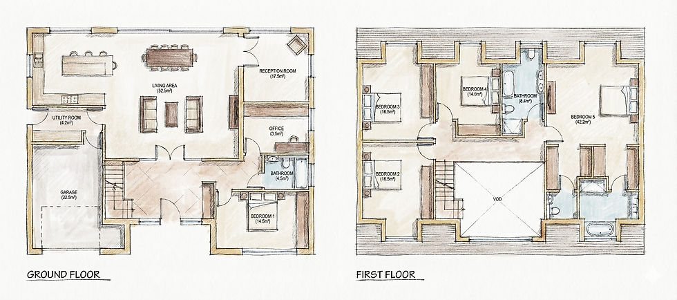 Extension and re-styling of existing bungalow to form a two-storey 5 Bedroom house.
